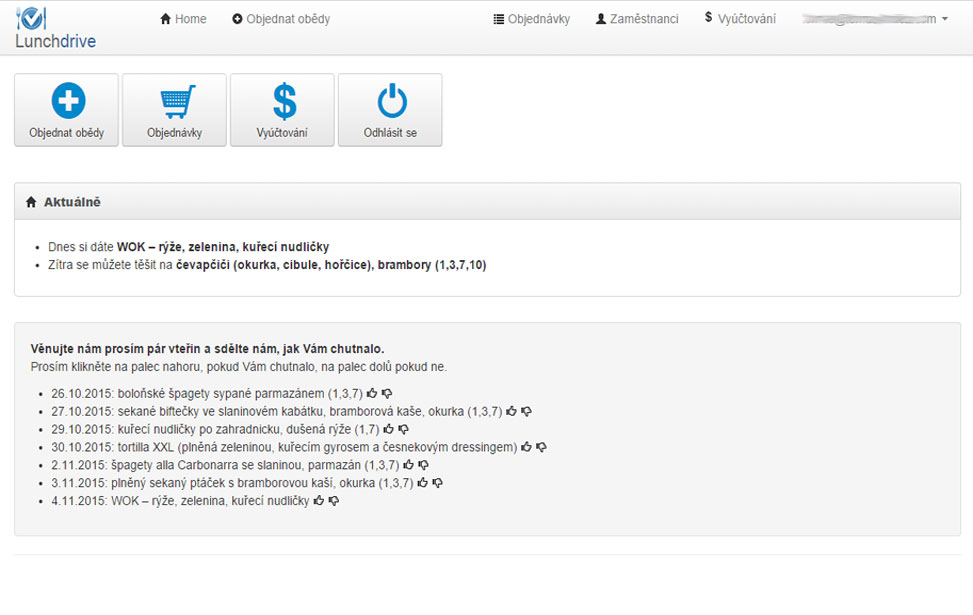 Za nulovou vstupní investici dodáváme našim klientům profesionální řešení. Díky lunchdrive si mohou lidé objednávat obědy přes internet, mobilní aplikaci nebo terminál instalovaný v jídělně. Propojení s čipy docházkového systému je samozřejmostí.